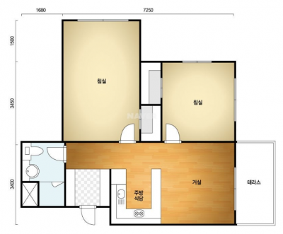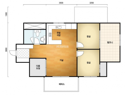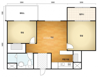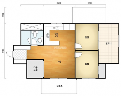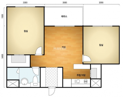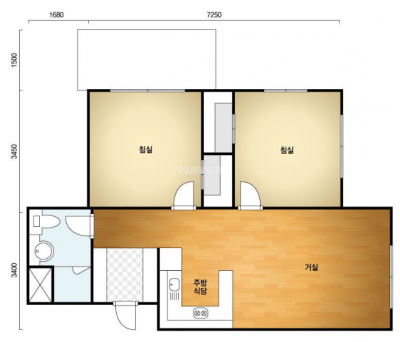 전용 51.58㎡투룸방 2개 / 욕실 1개